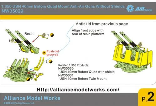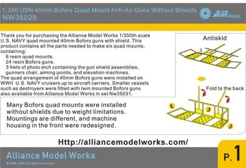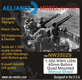1:350 WWII USN 40mm Bofors Quad Without Shield (x6)
