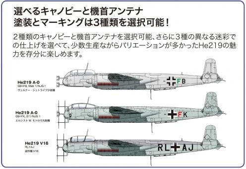 From Platz and Dragon comes this nicely molded 1/72 scale special edition model of the Heinkel He 219-0 Uhu. This kit also includes metal parts, two types of canopies and antennas and a Volkswagen Kübelwagen.