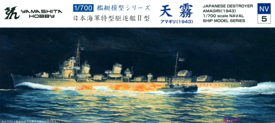The IJN Destroyer Type II Amagiri is famous for ramming and sinking PT-109, commanded by future President of the United States, then-Lieutenant Junior Grade John F. Kennedy. This kit is molded in gray and clear plastic.